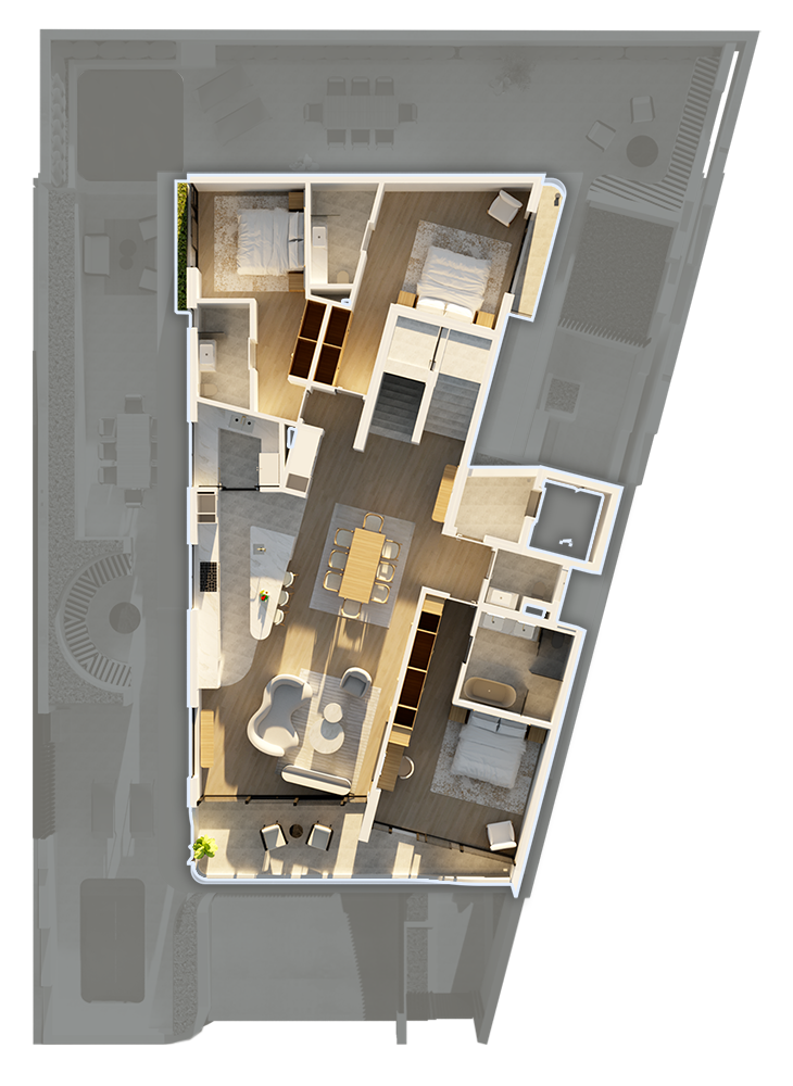 The careful planning of the design layout further enhances its integration with nature. With attention to privacy, airflow, and natural light, the design prioritizes comfort without sacrificing style. Throughout the residence, strategic placement of windows and openings not only enhances airflow but also creates an atmosphere filled with light. Residents can bask in the sun’s warmth while still enjoying the seclusion of their personal retreat.
