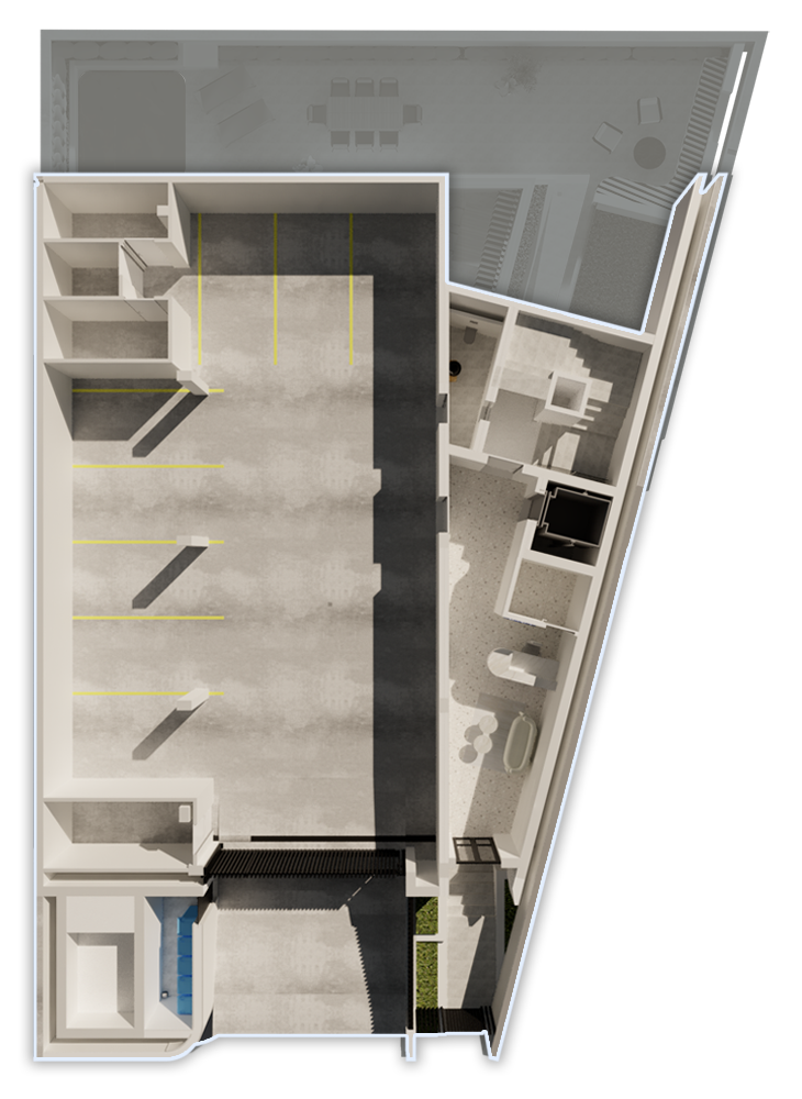 Stepping into the bathroom feels like entering a private spa sanctuary. The space is expansive, with high-quality finishes that come to life under the soft glow of elegant lighting. Walls are finished in natural stone with subtle veining, creating a timeless elegance.